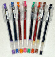 עטים בשלל צבעים, מתוצרת פיילוט יפן. עם דיו ג'ל שאינו נמרח. כותב בעובי 0.4 (דק במיוחד). ניתן למילוי. בצבעים: כחול, שחור, אדום, ירוק, חום, כתום, ורוד וסגול. נמכר בבודדים.