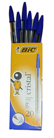 עט סטיק שקוף קריסל תוצרת BIC USA + פקק ניתן להשיג בצבעים כחול ושחור. כמות עטים בחבילה 20 י"ח