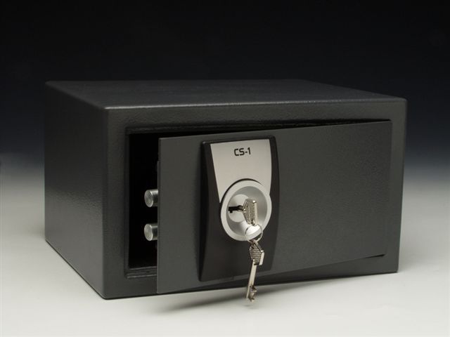 כספת CS1 נעילה מפתח. מערכת בריחים כפולה. מדף פנימי. אפשרות קיבוע . צבע אפור כהה. משקל 7.2 ק"ג. מידות ג.18 ר.32 ע.26 ס"מ