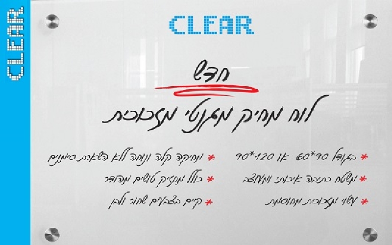 חדש !!! לוח מחיק מזכוכית מחוסמת