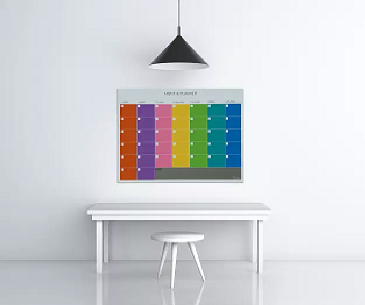 | לוח תכנון חודשי צבעוני מחיק ומגנטי מזכוכית
